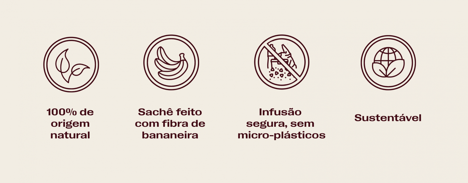 Nossos blends são acondicionados em sachês biodegradáveis feitos com fibra da bananeira 🍌 — uma escolha que respeita o corpo e o planeta.